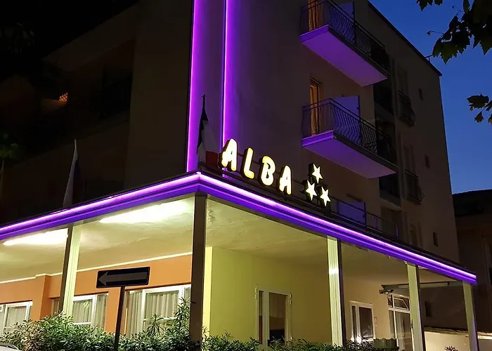 Rimini Miramare semtinde bulunan bu 3 yıldızlı Hotel Alba, tesisin yakınında özel otopark kolaylığı da sunmaktadır. Bu tesis, Rimini Dönme Dolabı'dan 7 km mesafede bulunmaktadır.